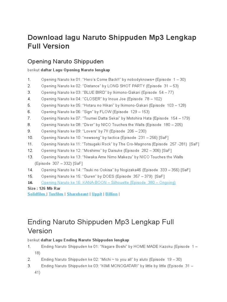 Dengan judul lovers bisa kamu download disini ada lagu versi full dan ada juga yang versi tv disertakan juga lirik lagu naruto shippuden opening 9 7. 2 komentar untuk download ost lagu naruto shippuden lengkap format mp3 anonuser 22 september 2020 17 41. Ost anime naruto shippuden full version mp3 download soundtrack anime naruto gratis. Bisa kamu download disini ada lagu versi full dan ada juga yang versi tv disertakan juga lirik lagu naruto shippuden opening 1 nobodyknows hero s come back.